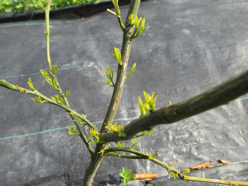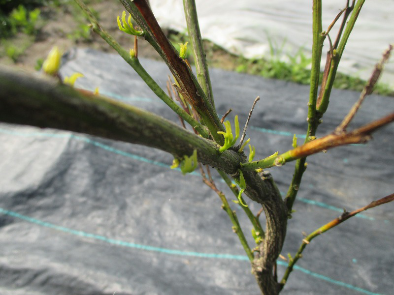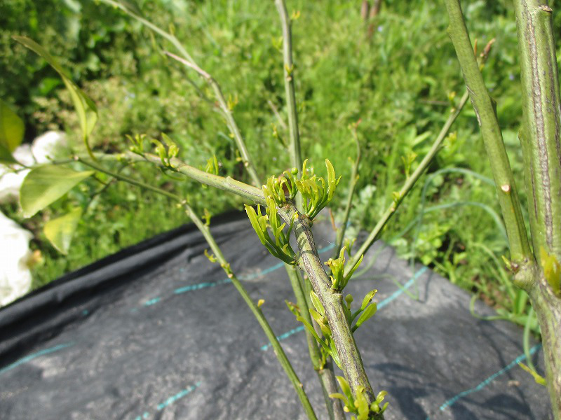 昨年(2021年)の3月に植え付けた柑橘類。10か月間何もしないで、しかも条件のあまり良くない場所で